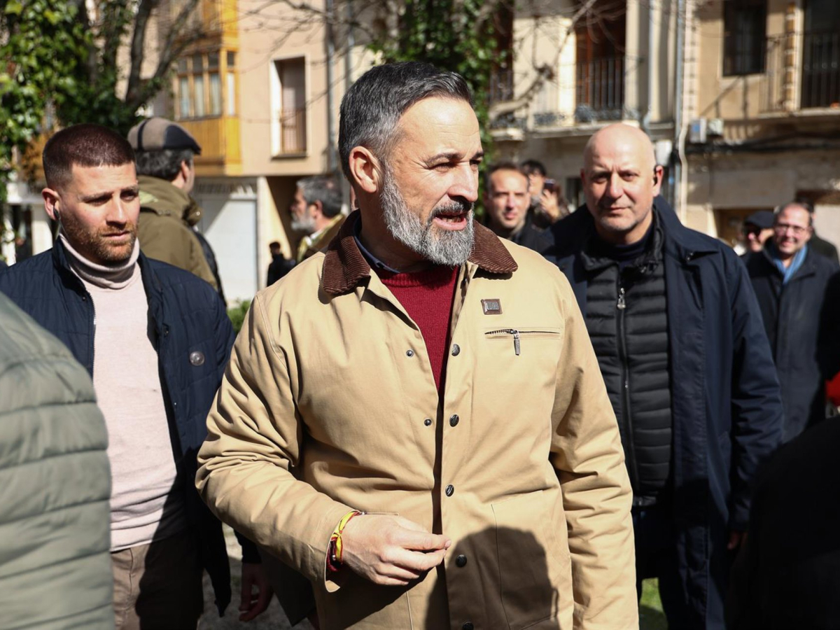 El presidente de VOX, Santiago Abascal, en una imagen de archivo, atiende a los medios de comunicación tras un acto electoral, a 19 de febrero de 2026, en Peñafiel, Valladolid (España). Photogenic/Claudia Alba - Europa Press