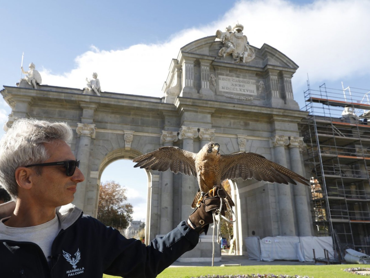Rapaces adiestradas volverán a sobrevolar la Puerta de Alcalá desde mayo para alejar a las palomas y proteger este emblemático monumento madrileño.