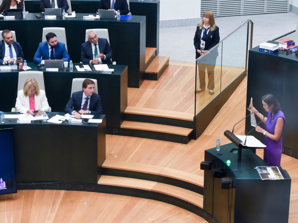 La portavoz del grupo municipal Socialista, Reyes Maroto, durante el Debate sobre el Estado de la Ciudad, ante el alcalde de Madrid, José Luis Martínez-Almeida Gustavo Valiente - Europa Press