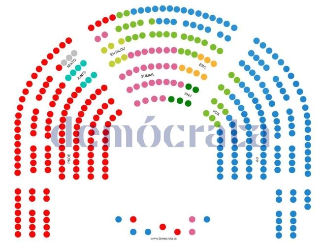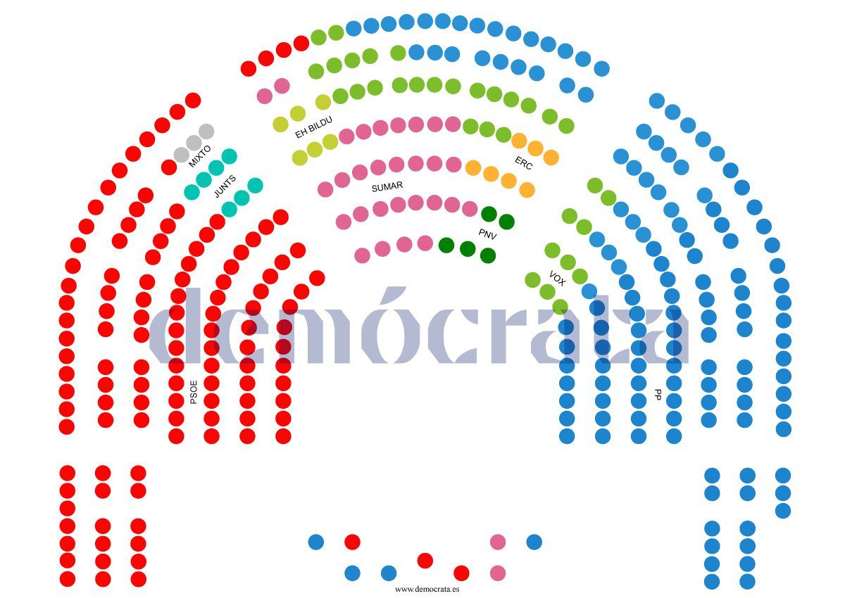 El PSOE y Sumar han hecho valer su mayoría para hacerse con los mejores puestos en la parte izquierda y central, y también reservar sitios para sus socios, que mejoran su posición respecto a pasadas legislaturas.