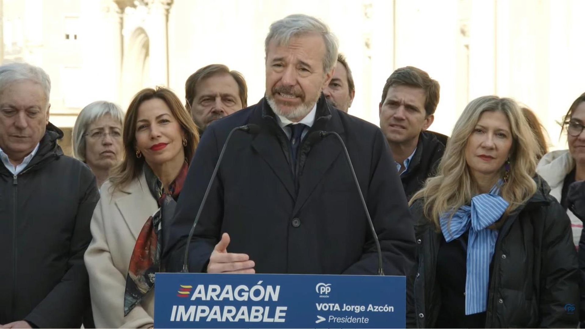 Las declaraciones se han producido en la plaza del Pilar de Zaragoza, en la última jornada de campaña, donde Azcón ha estado acompañado por otros dirigentes populares, entre ellos la vicepresidenta Mar Vaquero y la alcaldesa de Zaragoza, Natalia Chueca.