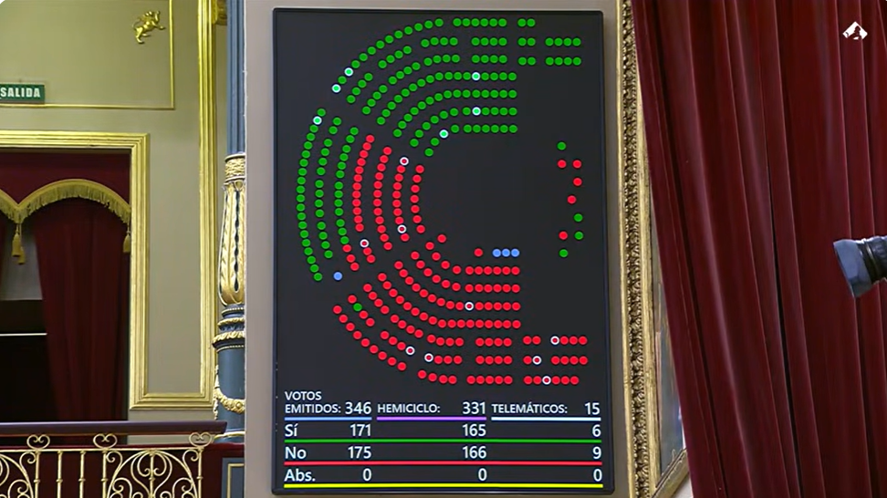 Con 346 votos emitidos, 171 votos a favor y 175 votos en contra, la Proposición de Ley de Conciliación y Corresponsabilidad Familia no ha superado su toma en consideración. Los votos a favor de PP y Vox no han sido suficientes para que la medida supere este primer trámite parlamentario.