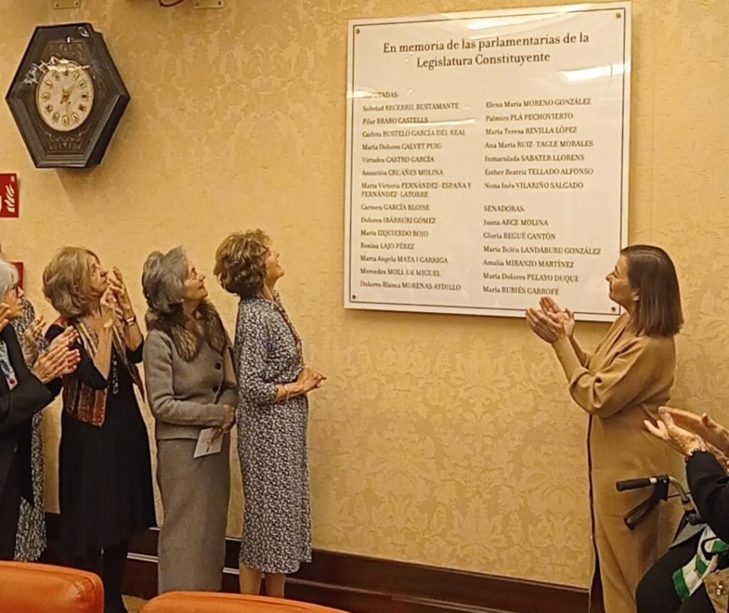 Concluido el coloquio se ha descubierto una placa de homenaje a las parlamentarias constituyentes colocada justo enfrente de los retratos de los padres de la Constitución. Con este gesto, las madres de la Constitución ya tienen su espacio en la sala Constitucional del Congreso.