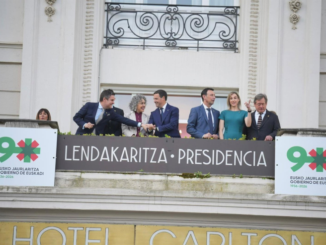 Todos los integrantes del Gobierno Vasco se han dado cita este martes en el Hotel Carlton de Bilbao, antiguo emplazamiento del primer Ejecutivo de Euskadi presidido por José Antonio Agirre, para conmemorar su 90 aniversario. En este escenario, el lehendakari, Imanol Pradales, ha leído una declaración institucional en la que ha apelado a la unidad, la democracia, el diálogo, el acuerdo y el autogobierno en un "mundo convulso" marcado por una "eclosión de los populismos".