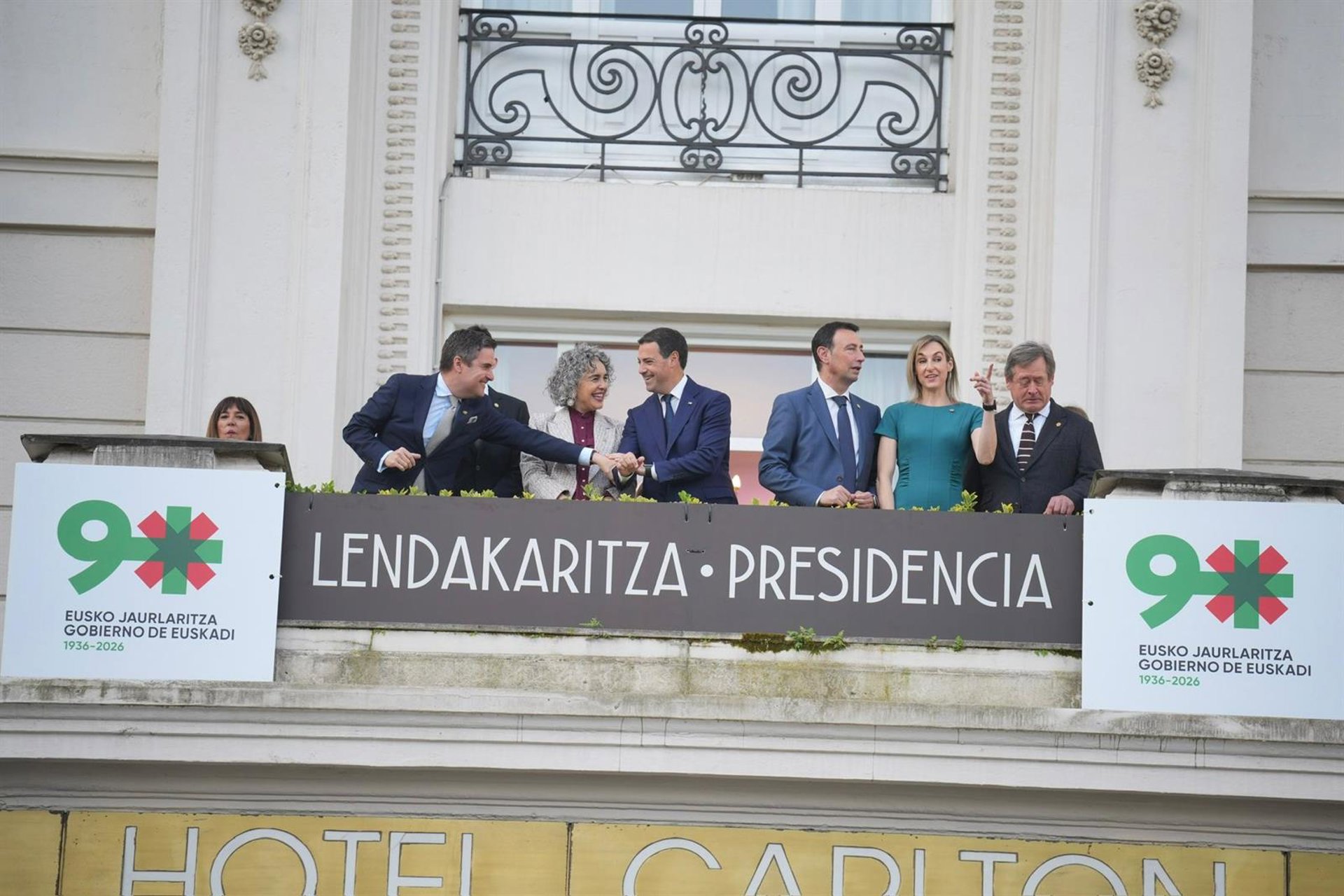 Todos los integrantes del Gobierno Vasco se han dado cita este martes en el Hotel Carlton de Bilbao, antiguo emplazamiento del primer Ejecutivo de Euskadi presidido por José Antonio Agirre, para conmemorar su 90 aniversario. En este escenario, el lehendakari, Imanol Pradales, ha leído una declaración institucional en la que ha apelado a la unidad, la democracia, el diálogo, el acuerdo y el autogobierno en un "mundo convulso" marcado por una "eclosión de los populismos".