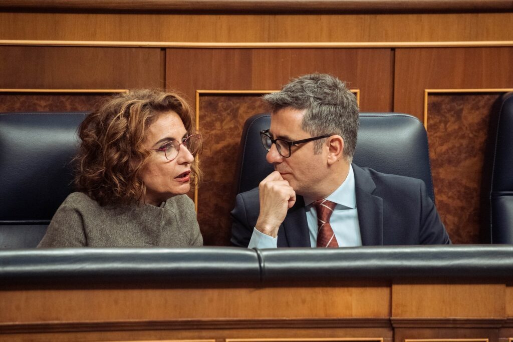 Miembros del Gobierno no ocultaban su decepción y frustración al finalizar el Pleno. Quienes más tardaron en salir de Palacio fueron la vicepresidenta de Hacienda, María Jesús Montero, y el ministro de Presidencia, Félix Bolaños, que se quedaron con el secretario de Organización del PSOE, Santos Cerdán, reunidos en la zona reservada para el Ejecutivo.
