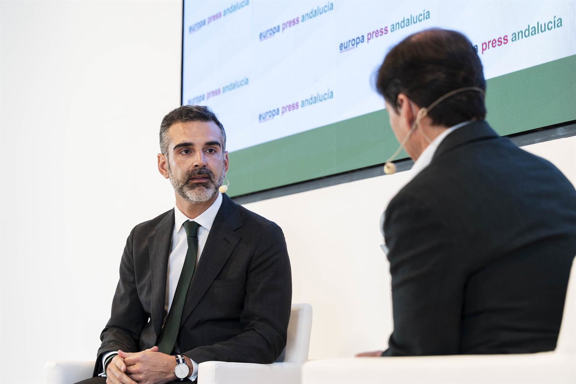 El presidente del PP de Almería y candidato a las elecciones andaluzas, Ramón Fernández-Pacheco, participa en un coloquio de los desayunos de Europa Press Andalucía en la sala Varadero de la Autoridad Portuaria. Marian León - Europa Press