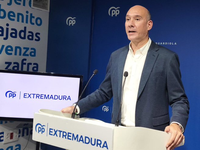 El portavoz del PP de Extremadura, José Ángel Sánchez Juliá, en una rueda de prensa en Mérida. EUROPA PRESS