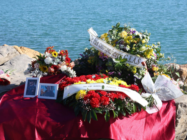 Una ofrenda floral en homenaje a los guardias civiles fallecidos, en el puerto de Barbate, a 9 de febrero de 2025, en Barbate, Cádiz, Andalucía (España).  Nacho Frade - Europa Press