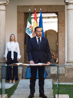 Durante su intervención, el nuevo vicepresidente ha querido agradecer a la presidenta de la Junta, María Guardiola, el trato que les "ha brindado desde el primer momento, así como a los consejeros que repiten" en el Ejecutivo extremeño, subrayando que se han "sentido acogidos desde el primer instante que hemos puesto el pie en esta casa".