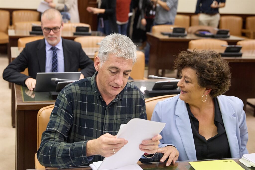 Casi al tiempo, la secretaria general de Podemos, Ione Belarra, entraba en la sala para trasladar ánimos a Vallugera –Podemos no tiene voto en la Comisión de Hacienda, donde el puesto del Grupo Mixto recae en BNG–.
