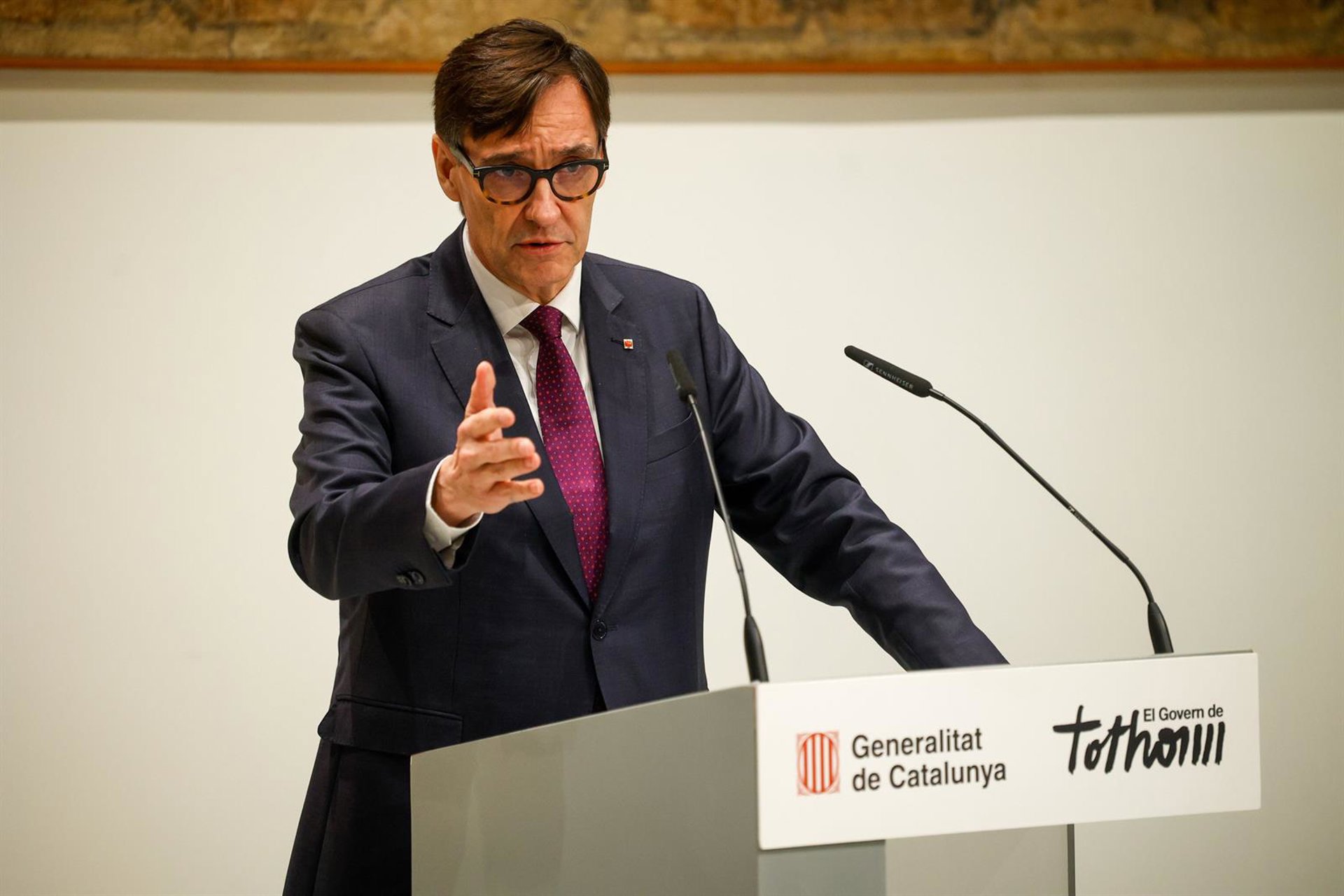 El presidente de la Generalitat, Salvador Illa, durante un acto en el Palau de la Generalitat. Kike Rincón - Europa Press