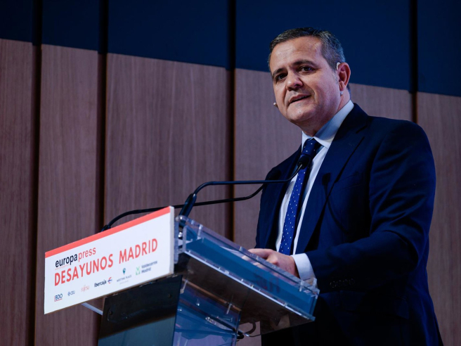 El consejero de Vivienda, Transportes e Infraestructuras, Jorge Rodrigo, participa en un desayuno organizado por Europa Press, a 28 de abril de 2026, en Madrid (España). Carlos Luján - Europa Press