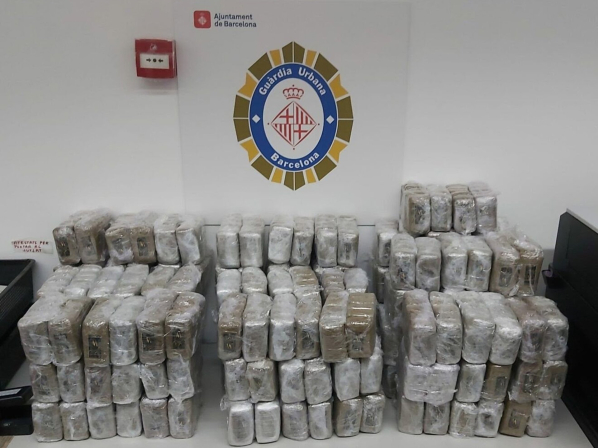 La Guardia Urbana de Barcelona incauta 96,26 kilos de hachís en un VTC en Les Corts y detiene a un sospechoso que ya ha ingresado en prisión.