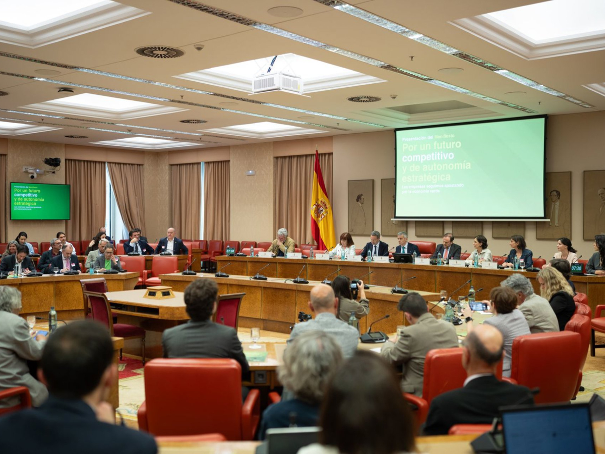 El GECV, que reúne a más de 50 compañías de sectores muy diversos, desde el 70% del Ibex hasta pymes innovadoras, dio a conocer el manifiesto “Por un futuro competitivo y de autonomía estratégica. Las empresas seguimos apostando por la economía verde” en el marco de un diálogo con grupos parlamentarios y agentes económicos, académicos y sociales.