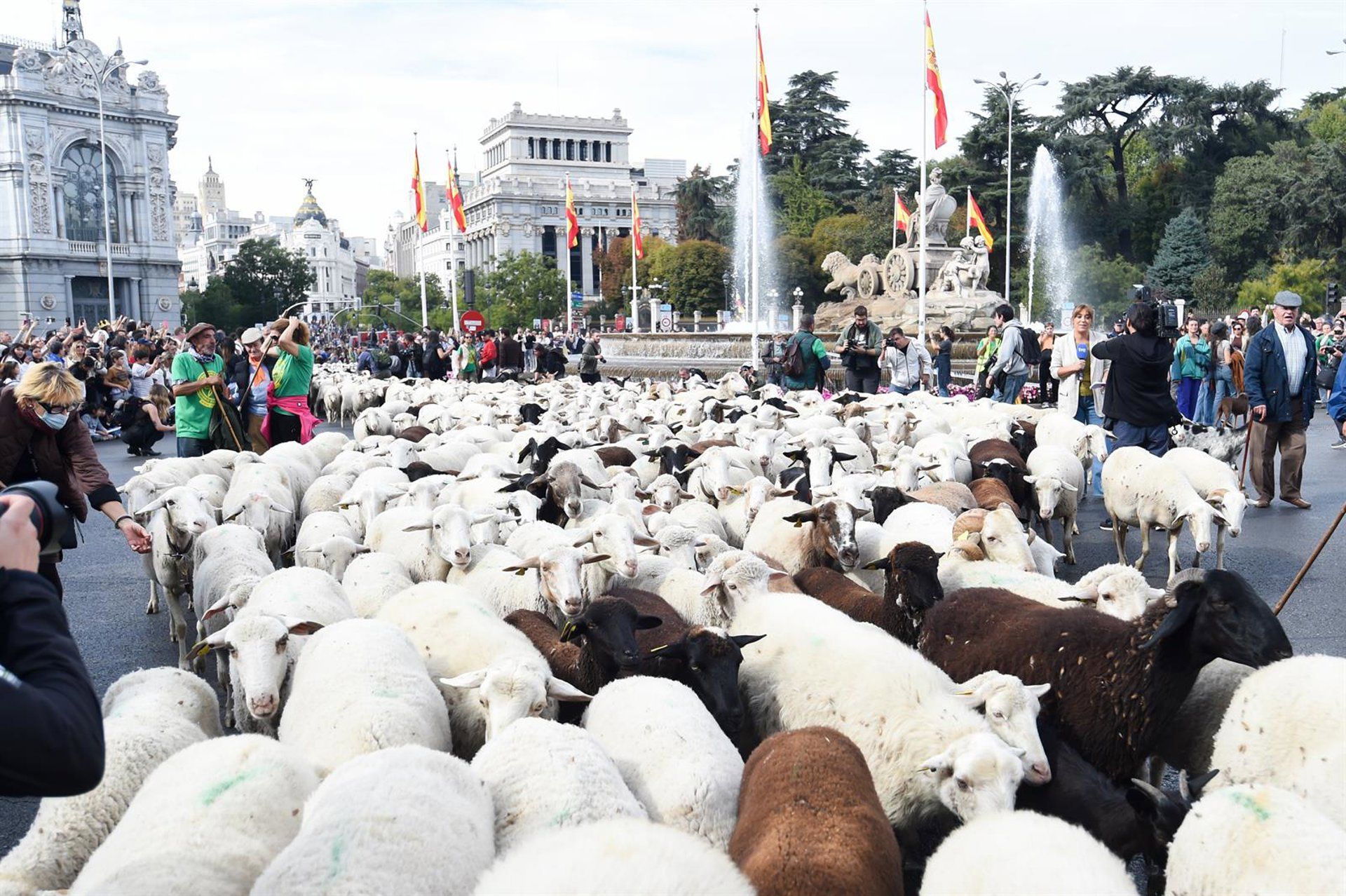 Este domingo, Madrid se ha llenado de vida con la celebración de la 32ª Fiesta de la Trashumancia, que este año ha contado con la presencia de más de 1.100 ovejas merinas y 200 cabras, incluyendo guisanderas y de Guadarrama. La fiesta regresó tras haber sido suspendida el año anterior por la enfermedad de la Lengua Azul.