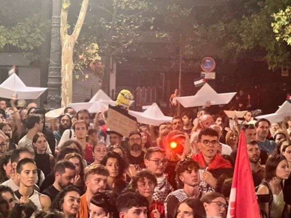 En Granada, se estima que entre 4.000 y 5.000 personas se sumaron a la manifestación, durante la cual se vieron ondear banderas y carteles proclamando ‘¡Palestina libre!’ y pidiendo la liberación de los activistas de la Flotilla. La marcha, que abarcó unos 500 metros, finalizó con la exhibición de una bandera palestina de diez metros.
