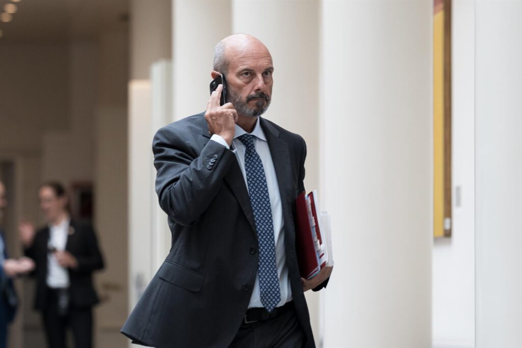 El presidente del Senado, Pedro Rollán, a su llegada a una sesión de control al Gobierno, en el Senado, a 30 de septiembre de 2025, en Madrid (España). Diego Radamés - Europa Press