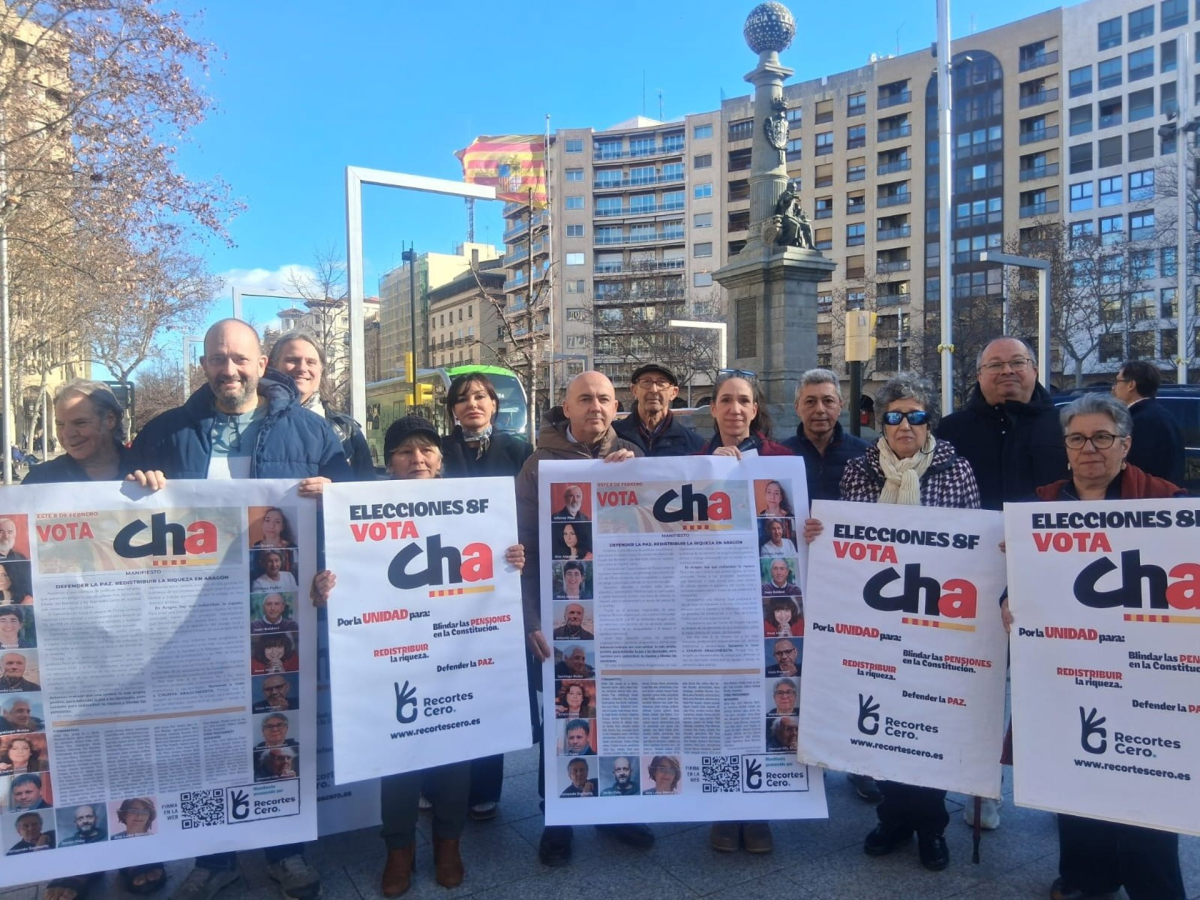 El texto se ha dado a conocer este viernes ante el monumento al Justicia en Zaragoza y alerta de que “asistimos a una ofensiva de políticas reaccionarias que ponen en peligro la paz, los pilares más básicos del Estado del Bienestar y las libertades”. En el manifiesto se alude al “Genocidio en Gaza, el ataque de Trump contra la legalidad internacional”, así como al deterioro de los derechos laborales y sociales y de las condiciones de vida de la mayoría social.