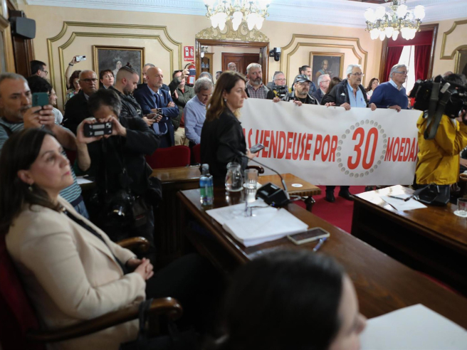 El pleno transcurrió con relativa calma durante algo más de media hora, con varias iniciativas debatidas y votadas, hasta que parte del público comenzó a silbar y a gritar “traidora” a Reigosa, llegando incluso a lanzarle monedas. En ese momento, el alcalde ordenó desalojar la sala.