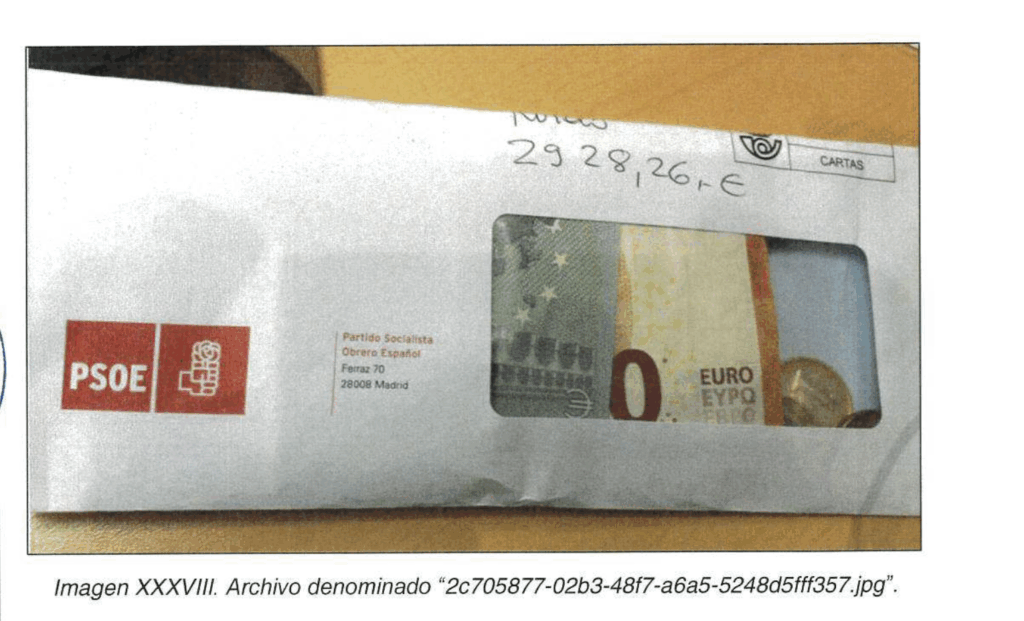La Guardia Civil sostiene a partir de las evidencias que parte de esas entregas se efectuaron en sobres recogidos en la sede socialista de la calle Ferraz, en Madrid.