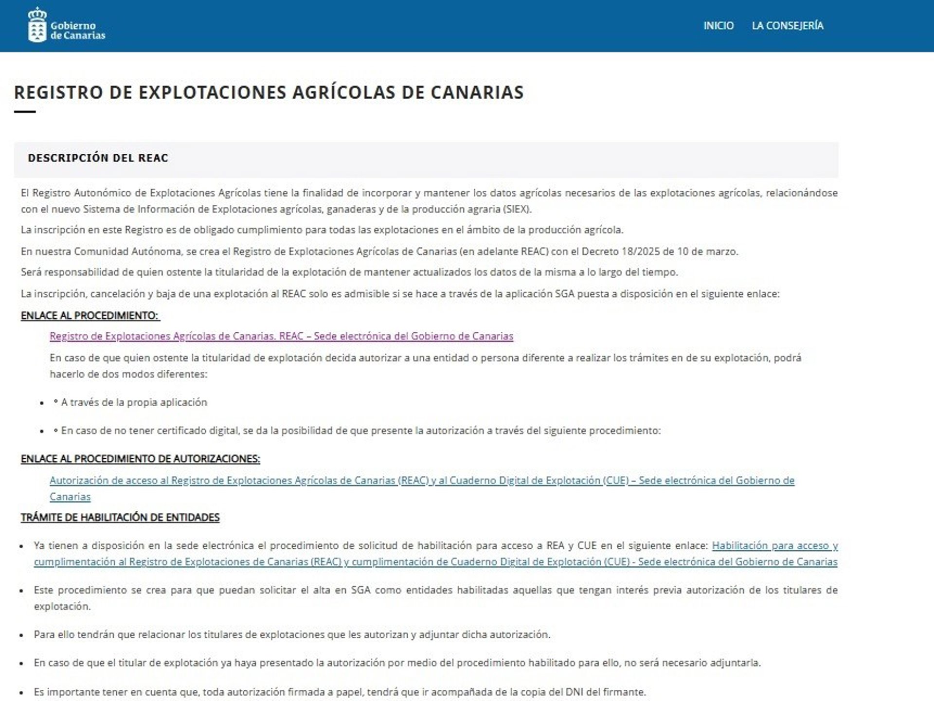 La página oficial del REAC incorpora también los procedimientos de autorización y habilitación de entidades para que terceras personas puedan actuar en representación de la titularidad de la explotación cuando sea preciso.