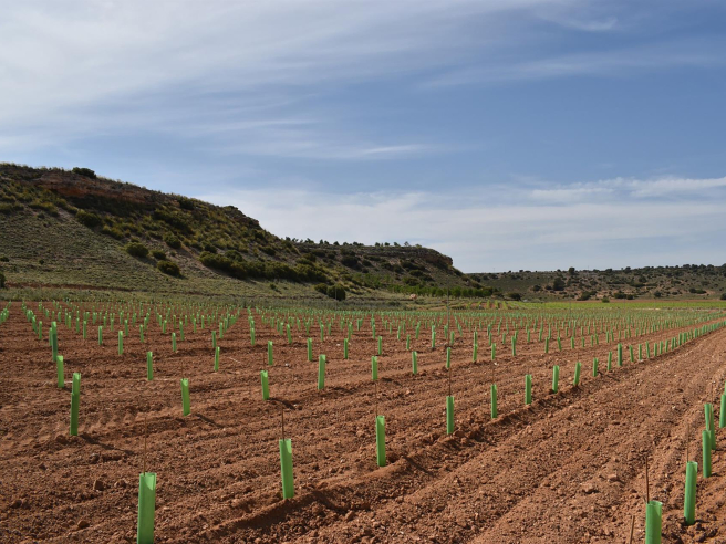 “Son parcelas de dos hectáreas, una en Cenizate (Albacete) y otra en Tomelloso (Ciudad Real), en terrenos del Ivicam. Las dos parcelas son idénticas en cuanto al número y el tipo de injertos. Lo que cambia son las condiciones edafoclimáticas: una está en una ubicación con un clima más mediterráneo-continental como es La Manchuela y la otra en un enclave con un clima más seco y situado a una menor altitud (La Mancha) y donde la influencia de elementos como cerros o cordilleras también es menor”, ha explicado López.