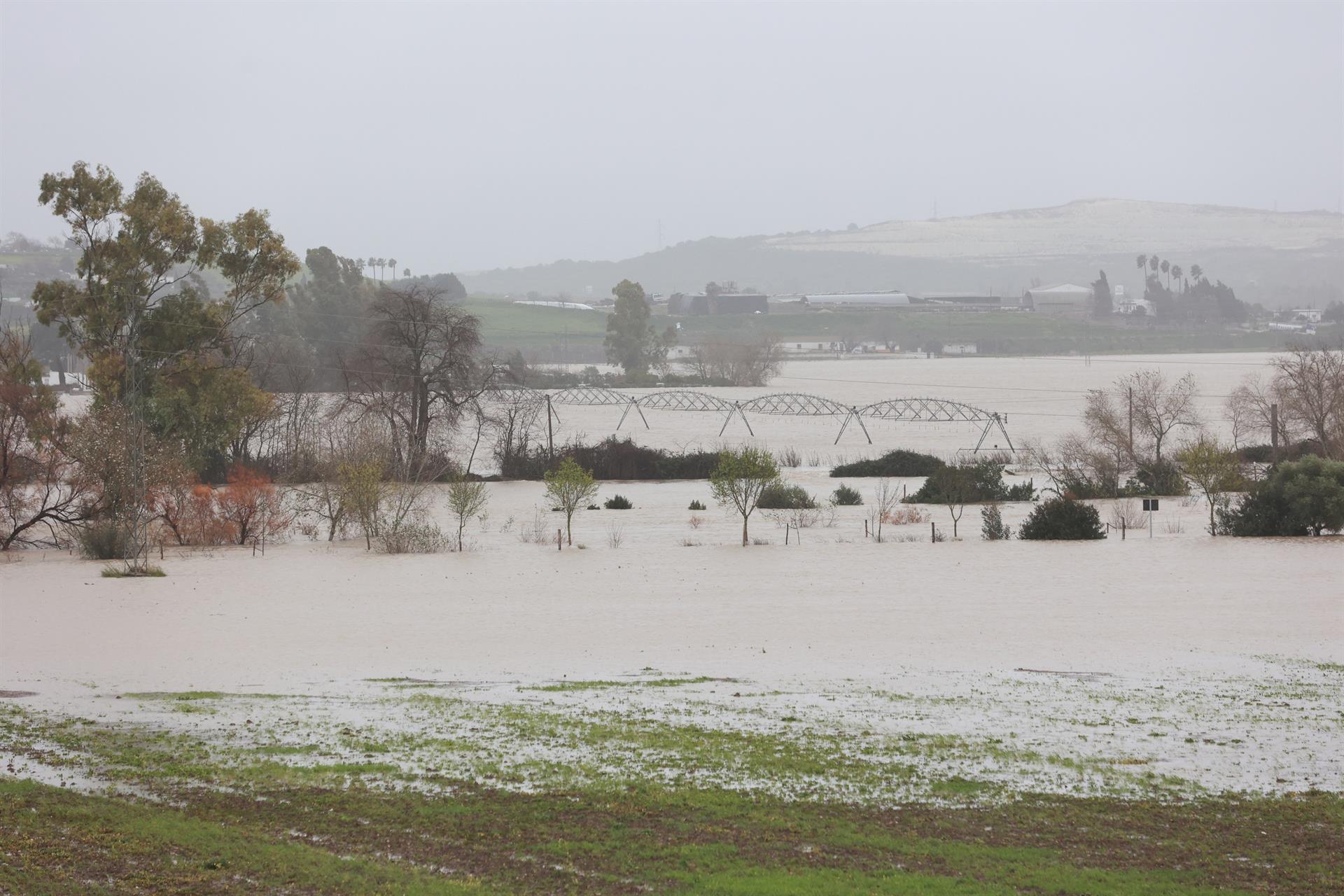 En el Campo de Gibraltar, los principales damnificados han sido los cítricos y aguacates, que han permanecido durante muchos días totalmente inundados y siguen bajo el agua por el desbordamiento del Guadiaro y el Hozgarganta. En la comarca de La Janda, además de los cereales de invierno, se han visto dañados cultivos hortícolas tanto en invernadero como al aire libre, así como explotaciones de olivar superintensivo y aguacate.