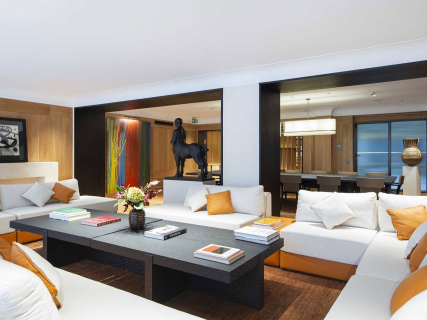 Casa Murrieta funciona igualmente como centro artístico y cultural privado. Sus estancias, conectadas entre sí, exhiben una cuidada selección de obras que se distribuyen a lo largo de las salas, con piezas de artistas como Chillida, Alexander Calder, Ramon Enrich, Joan Miró, Pablo Palazuelo o Antoni Tàpies. El mobiliario de autor incorpora elementos singulares, entre ellos una gran mesa de mármol de Calacatta combinada con cristal de roca, además de un mural de gran formato inspirado en los surcos de la tierra riojana.