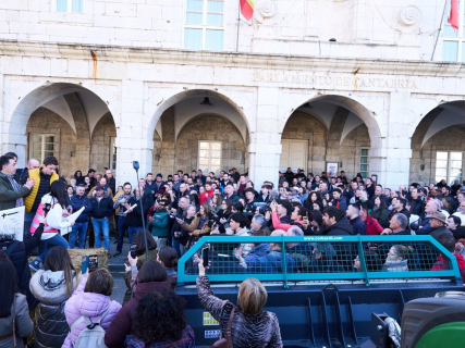 De nuevo en el exterior, entre el estruendo de petardos y el sonido de los campanos que portaban los asistentes, se ha procedido a la lectura de un manifiesto en el que agricultores y ganaderos han insistido en que "sin sector primario no hay comida". Tras este acto, la tractorada ha puesto rumbo a la Delegación del Gobierno.