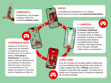 Con el fin de acercar este proceso al público, la nueva edición de la campaña vuelve a incluir un minijuego digital interactivo que muestra el recorrido completo de una botella de vidrio, desde que se recoge en el bar hasta su lavado, rellenado y posterior distribución.