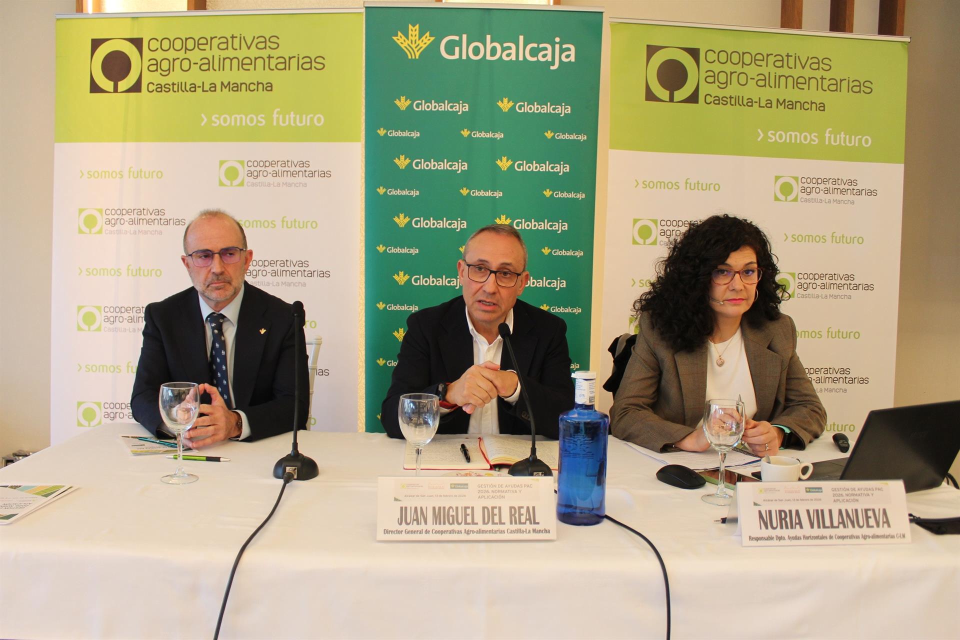 Bajo el título “Gestión de ayudas PAC 2026. Normativa y aplicación”, la sesión fue inaugurada por Juan Miguel Del Real, director general de Cooperativas Agro-alimentarias Castilla-La Mancha, Rafael Mendoza, responsable de PAC y Ayudas Agrarias de Globalcaja, y Nuria Villanueva, responsable del Departamento de Ayudas Horizontales de esta entidad, ha informado la organización en nota de prensa.