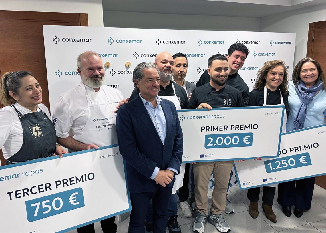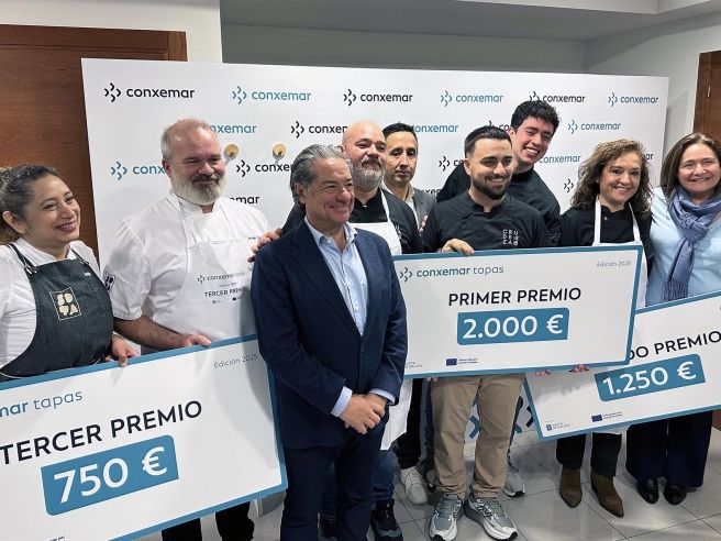Durante la ceremonia, que se celebró esta mañana en la sede de Conxemar, el restaurante María Manuela obtuvo el segundo lugar y un premio de 1.250 euros con su tapa ‘Merluza 3.0’, mientras que el tercer puesto fue para Sota y su tapa ‘Mar y Tierra’, premiada con 750 euros.