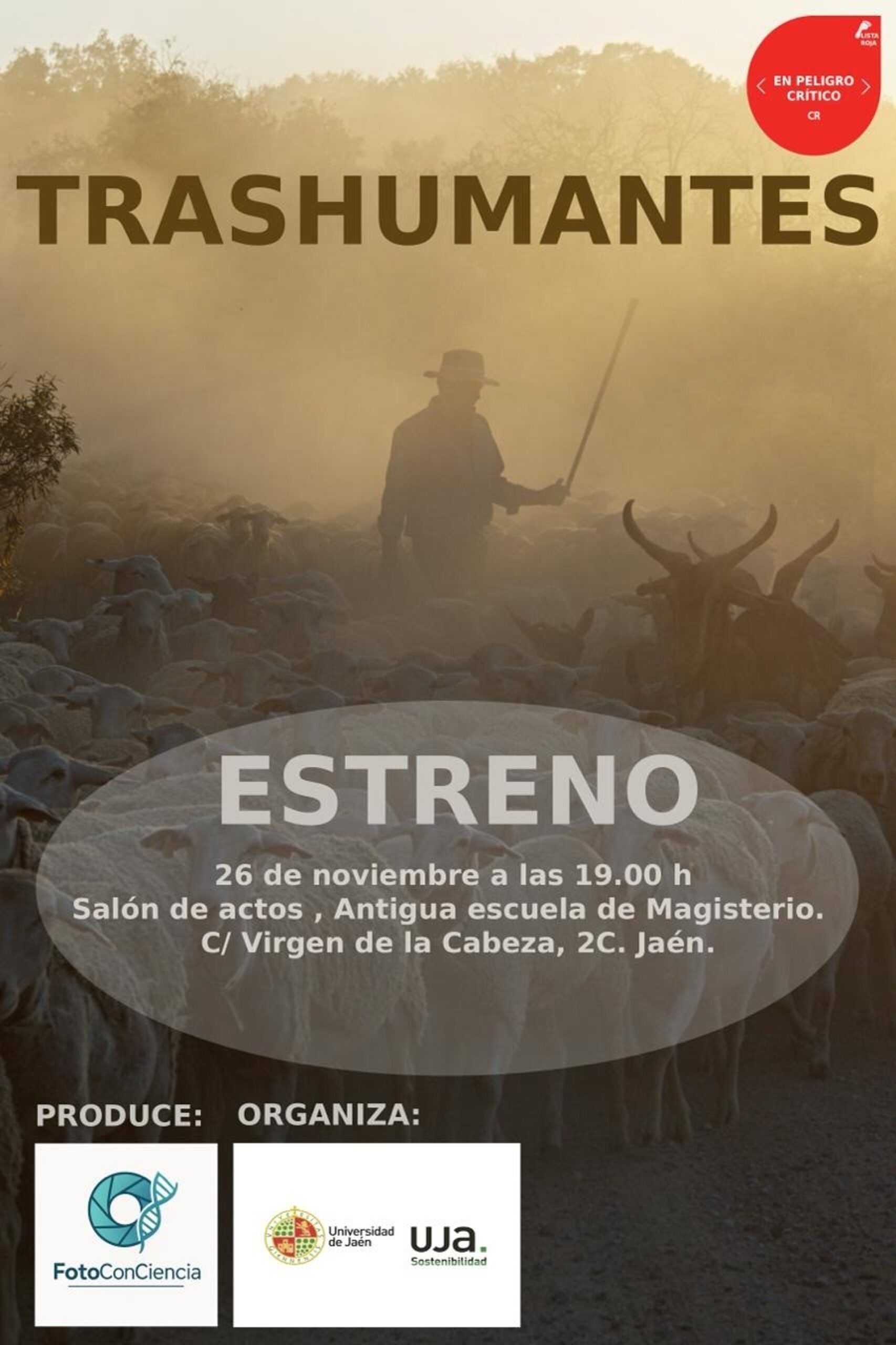 La Universidad de Jaén será la sede del estreno del documental ‘Trashumantes en Peligro Crítico’ el próximo 26 de noviembre. Este evento tiene como objetivo promover la sensibilización sobre el cuidado ambiental y la valoración del patrimonio natural y cultural de Jaén. El filme, que tiene una duración de 30 minutos, ha sido dirigido y capturado en imágenes por el doctor Enrique García Muñoz, bajo la iniciativa FotoConCiencia.