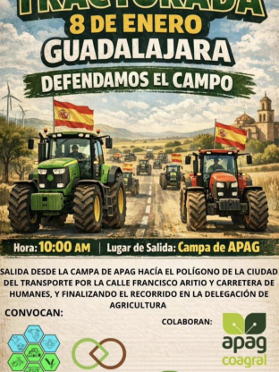 La protesta en Guadalajara está organizada por la Asociación en Defensa del Campo de Guadalajara (Adecgu), integrada en la Unión Nacional de Asociaciones del Sector Primario Independientes (Unaspi). Esta organización ha promovido diferentes movilizaciones y cortes de tráfico en varios puntos del país para los días 8 y 9 de enero, coordinados con acciones similares en otros Estados miembros de la UE.