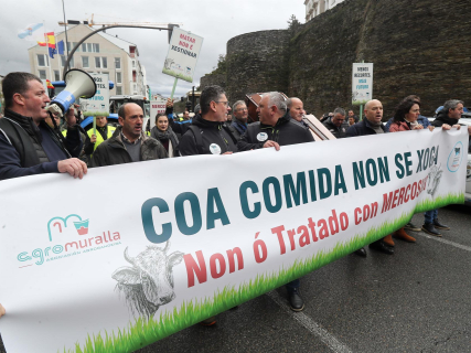 De forma paralela, en Lugo, Agromuralla y la asociación Gandeiros Galegos da Suprema llevaron su protesta a las calles con una marcha entre la sede de la Xunta en la Ronda da Muralla y la Subdelegación del Gobierno, para expresar también su oposición al pacto comercial entre la UE y Mercosur.