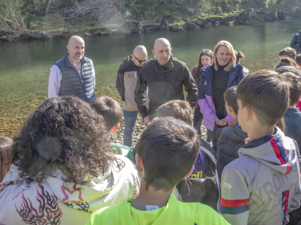 Escolares de Cuevas del Castillo participan en la suelta de 4.000 alevines de trucha en el río Pas