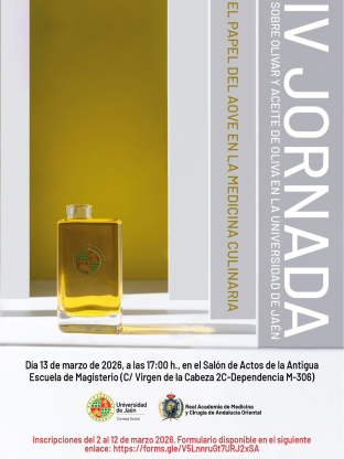 El Consejo Social de la Universidad de Jaén (UJA), junto con la Real Academia de Medicina y Cirugía Oriental, Ceuta y Melilla, impulsa este viernes la IV Jornada sobre Olivar y Aceite de Oliva, que lleva por título “El papel del AOVE en la medicina culinaria”. La sesión se desarrollará a partir de las 17,00 horas en el salón de actos de la antigua Escuela de Magisterio.