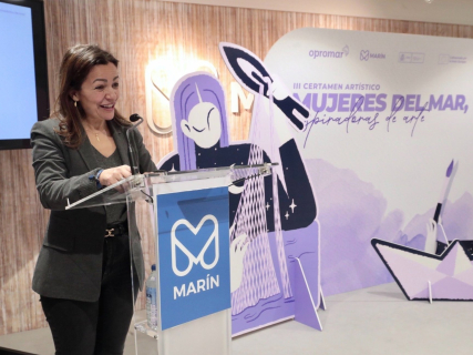 La conselleira do Mar, Marta Villaverde, participó este viernes en Marín en la presentación del III certamen artístico 'Mulleres do Mar, inspiradoras do arte', impulsado por la Organización de Produtores de Pesca Fresca do Porto e Ría de Marín (Opromar). Durante su intervención, remarcó el compromiso de la Xunta con la igualdad y con la visibilización del talento de las mujeres.