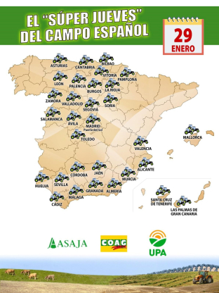 La Federación Andaluza de Caza ha hecho público el respaldo de los cazadores andaluces a las protestas y tractoradas previstas para este jueves, 29 de enero, definidas como un "super jueves" del campo español y promovidas por UPA, Asaja y COAG.