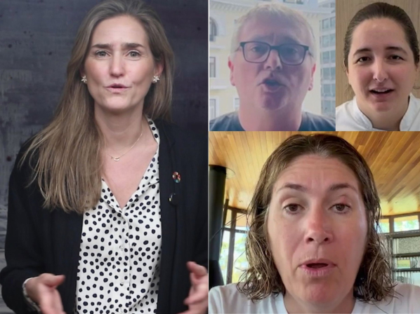 En la grabación aparecen Andoni Luis Aduriz, Joan Roca, Yolanda León, Diego Guerrero, Ángel León, Jesús Sánchez, Maca de Castro, María Gómez, Isabel Álvarez y Beatriz Sotelo. Transición Ecológica recupera y adapta el célebre lema "Pezqueñines '¡No, gracias!" de hace 43 años para centrarlo en la anguila. "Angulas no, gracias", proclaman los cocineros en las imágenes.
