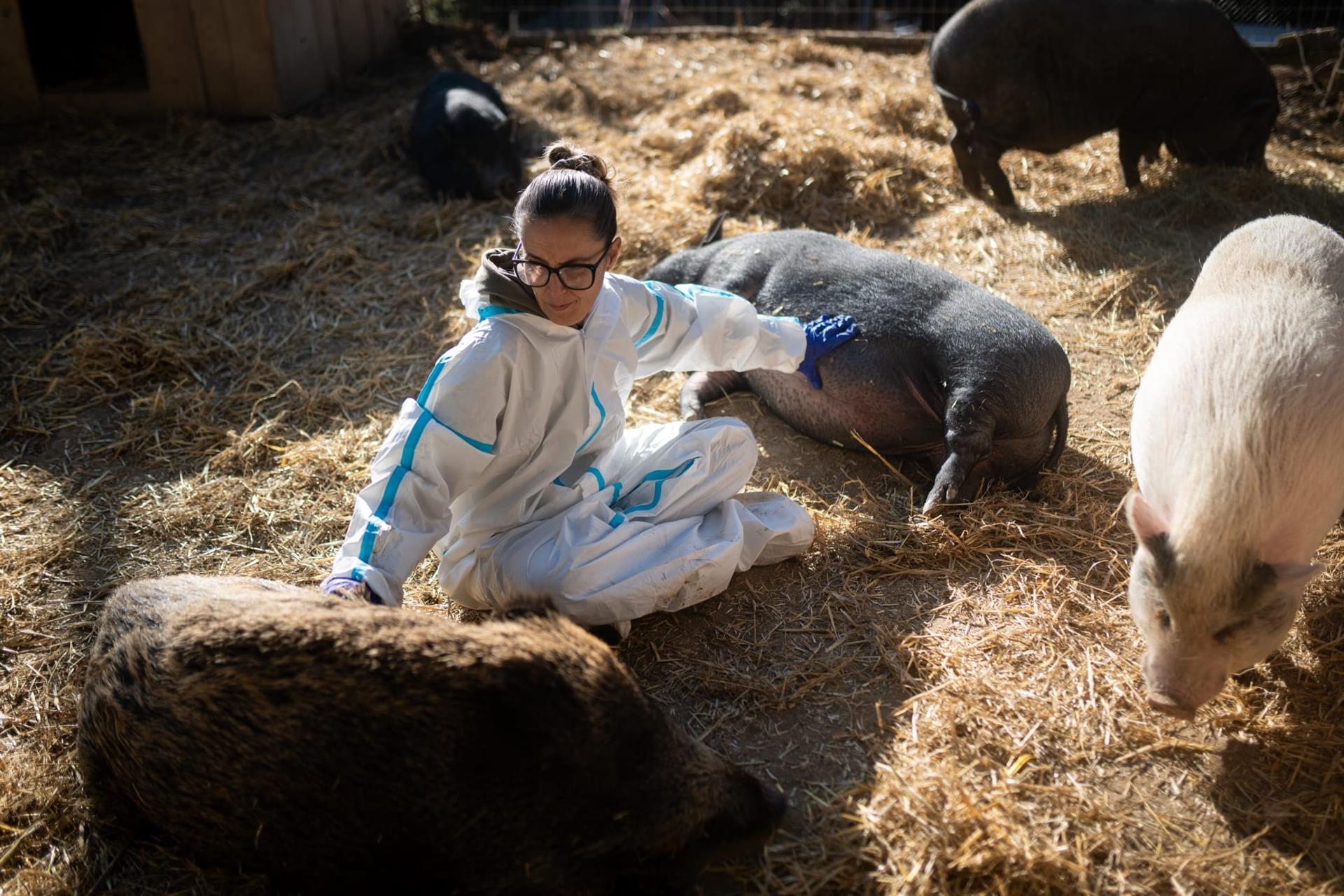 La mujer gestiona en solitario este ‘santuario’, donde viven 51 animales, entre ellos cerdos, jabalíes, ovejas, gatos y pavos, entre otras especies. Para hacer frente a los gastos, organiza rifas benéficas y participa en mercadillos con distintas actividades: “No tengo voluntarios y mi exsuegro me ayuda mucho”.