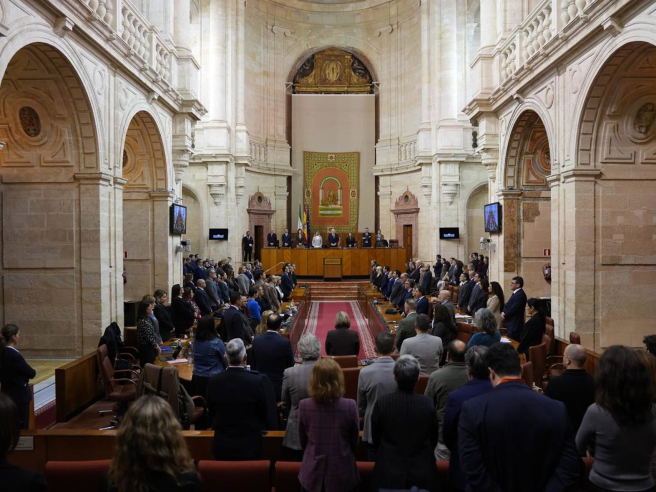 En ese mismo acto, la Cámara andaluza ha hecho llegar igualmente su pésame a los allegados del joven maquinista Fernando Huertas, natural de Sevilla, que perdió la vida en un accidente en la red de Rodalies en Barcelona el pasado 20 de enero.