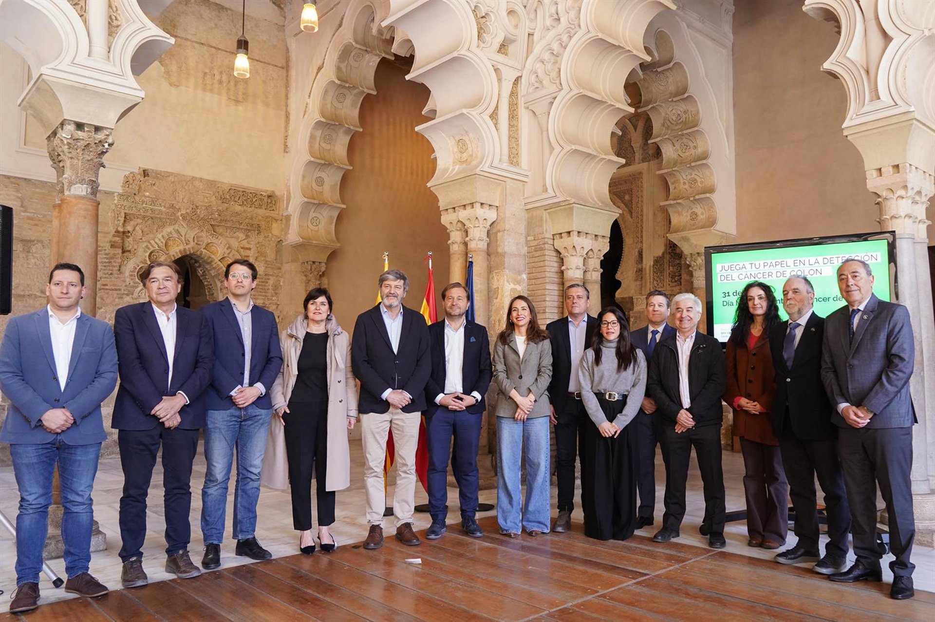 La presidenta de las Cortes de Aragón, María Navarro, ha llamado este martes a “seguir impulsando sin descanso la prevención” del cáncer de colon durante un acto celebrado en el palacio de La Aljafería, donde la Asociación Española Contra el Cáncer (AECC) ha conmemorado el Día Mundial contra esta patología. A la cita han acudido los integrantes de la Mesa del Parlamento autonómico, así como diversos diputados.