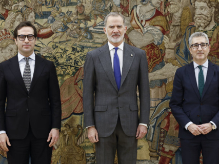 El vicepresident primer del Govern i ministre d'Economia, Comerç i Empresa, Carlos Cuerpo, i el nou responsable d'Hisenda, Arcadi España, han formalitzat aquest divendres la promesa dels seus càrrecs davant el rei Felip VI en una cerimònia celebrada al Palau de la Zarzuela.