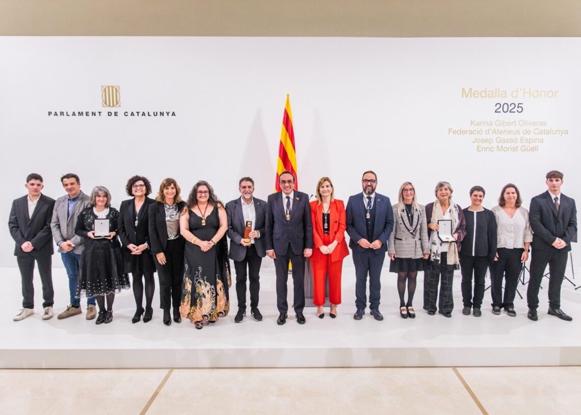La ceremonia de entrega se llevó a cabo en el auditorio del Parlament este miércoles, iniciando con un minuto de silencio para conmemorar el primer aniversario de la dana. Durante el evento, también se homenajeó a la Federació d’Ateneus de Catalunya y, de manera póstuma, a los activistas sociales Josep Gassó y Enric Morist.