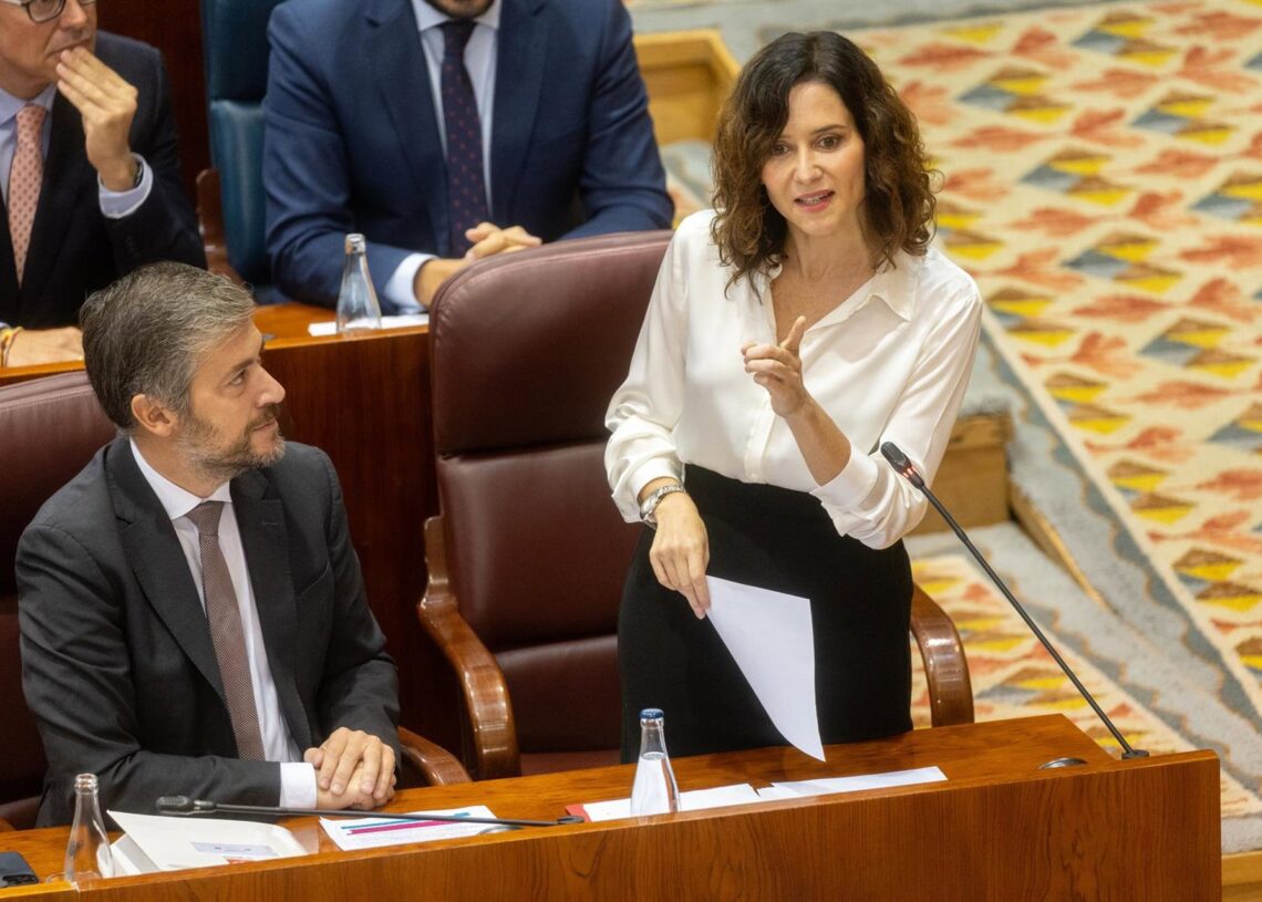 ‘En el Gobierno de Andalucía ha habido dimisiones. Ya podían tomar ejemplo en el suyo, ya podían tomar ejemplo en el de Pedro Sánchez’, afirmó Ayuso en respuesta a Mar Espinar, portavoz del PSOE, quien cuestionó sobre la situación de la sanidad pública madrileña.