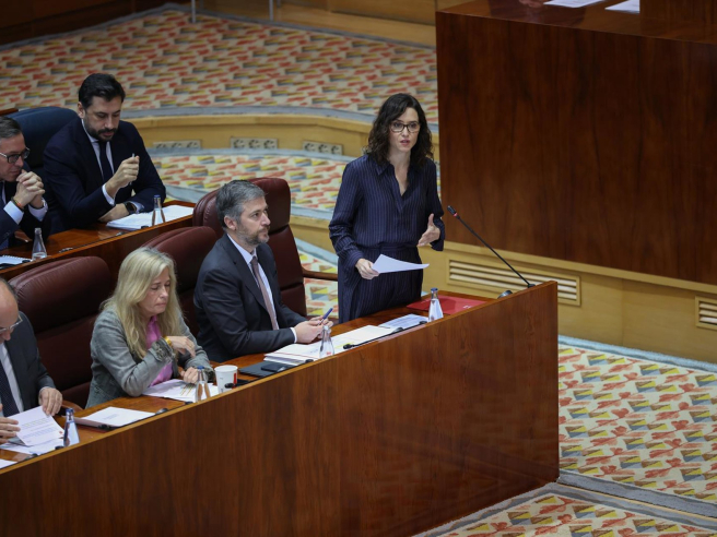Ayuso defiende la Medalla a EEUU y acusa al Gobierno central de aislar a España y acercarse solo a Hamás en un tenso debate en la Asamblea de Madrid.