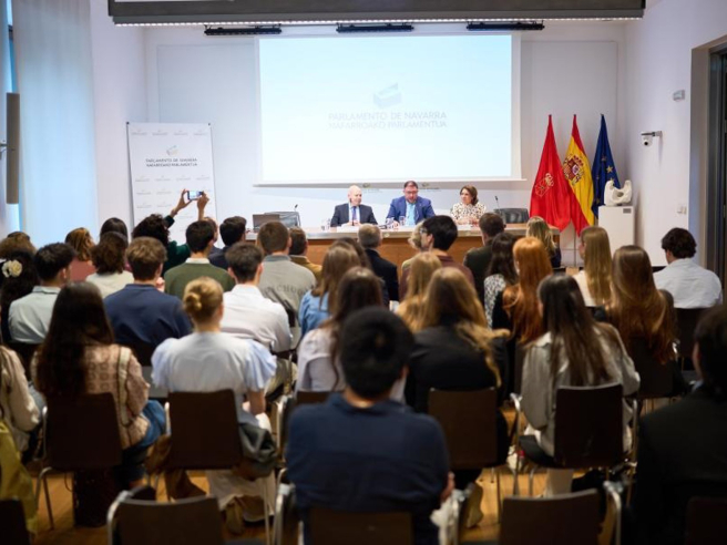 La cita, promovida por el Aula de Derecho Parlamentario de la Universidad de Navarra, ha congregado a un nutrido auditorio, integrado sobre todo por estudiantes, además de miembros de la Mesa y representantes de diferentes grupos parlamentarios.