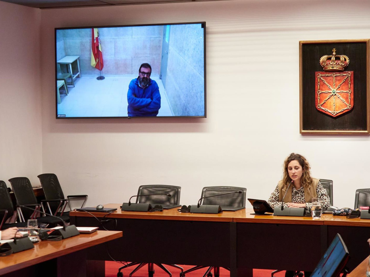 La comparecencia se ha realizado por vía telemática después de que un informe médico desaconsejara su traslado al Parlamento navarro, al haber sufrido supuestamente un accidente en el gimnasio del centro penitenciario. La sesión ha durado en torno a dos horas y media, durante las cuales el exasesor se ha limitado en gran parte a tomar notas con un bolígrafo.